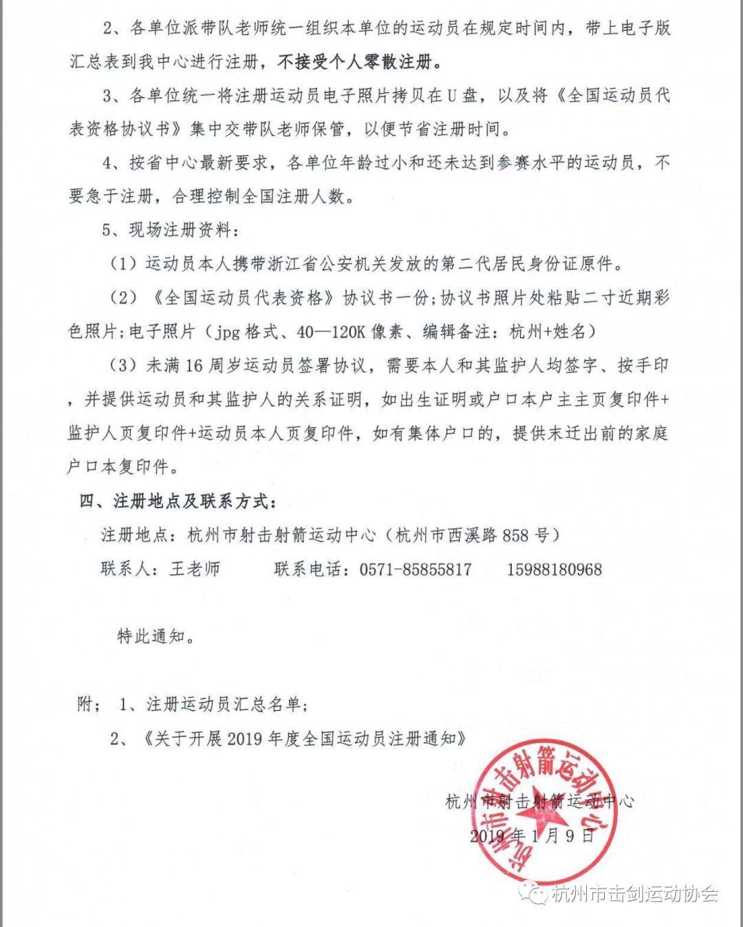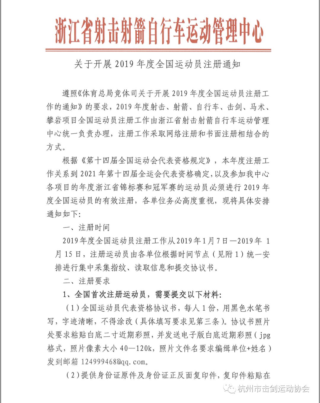【紧急通知】2019年度杭州市击剑项目全国注册 通知