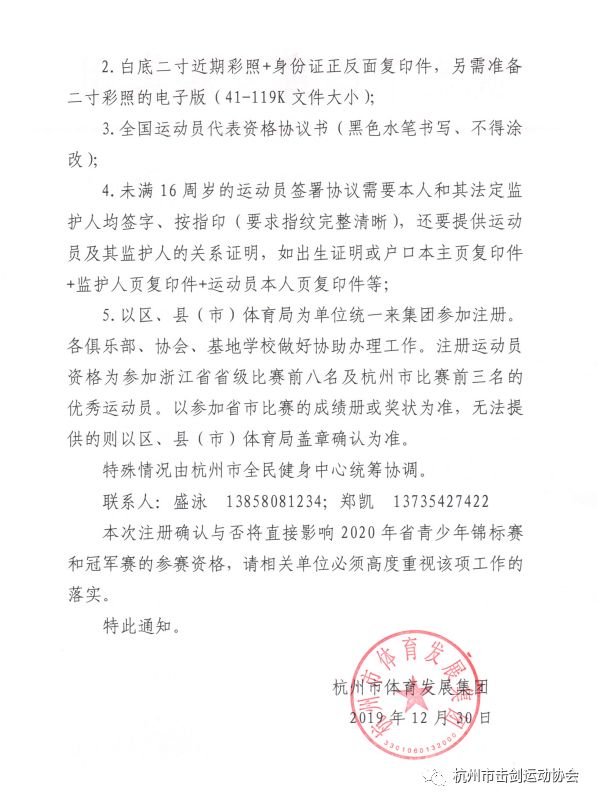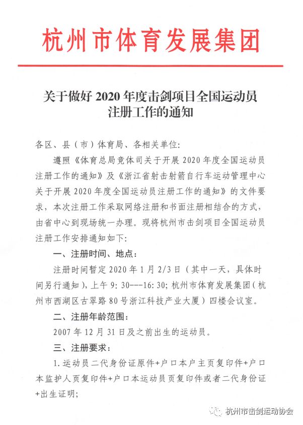 关于做好2020年度击剑项目全国运动员注册工作的通知